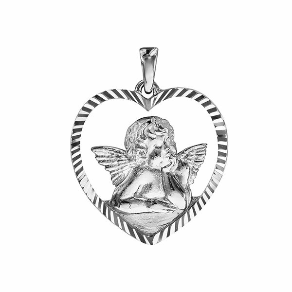 Bijouterie Henrard Pendentif argent rhodié cœur ange contour ajouré diamanté 39 €