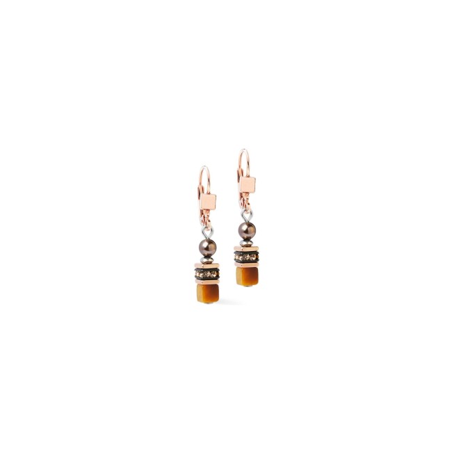 Boucles d'oreilles Coeur de Lion Princess Earth Glow en acier, métal doré rose, oeil de tigre, cristaux Swarovski et strass
